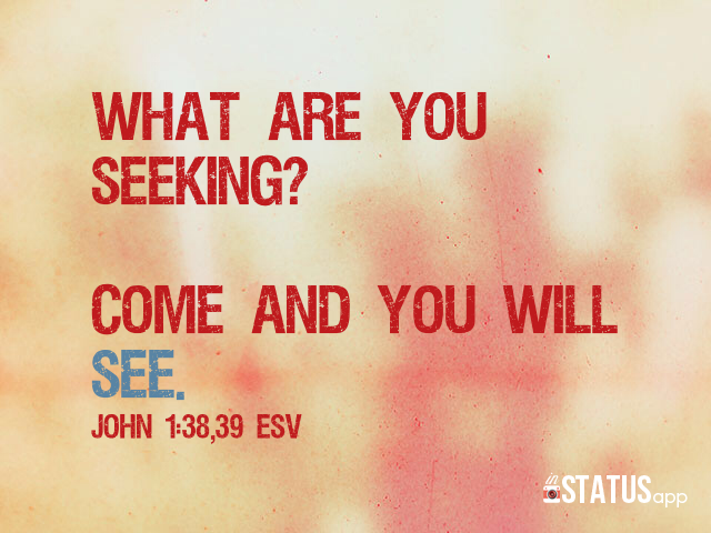 Jesus often gets to our hearts by asking great questions. In the book of John, the first question he asks his disciples is “what are you seeking?” (John 1:38 ESV) They then ask him where he’s staying and he simply answers, “come and you will see.” (John 1:39 ESV)