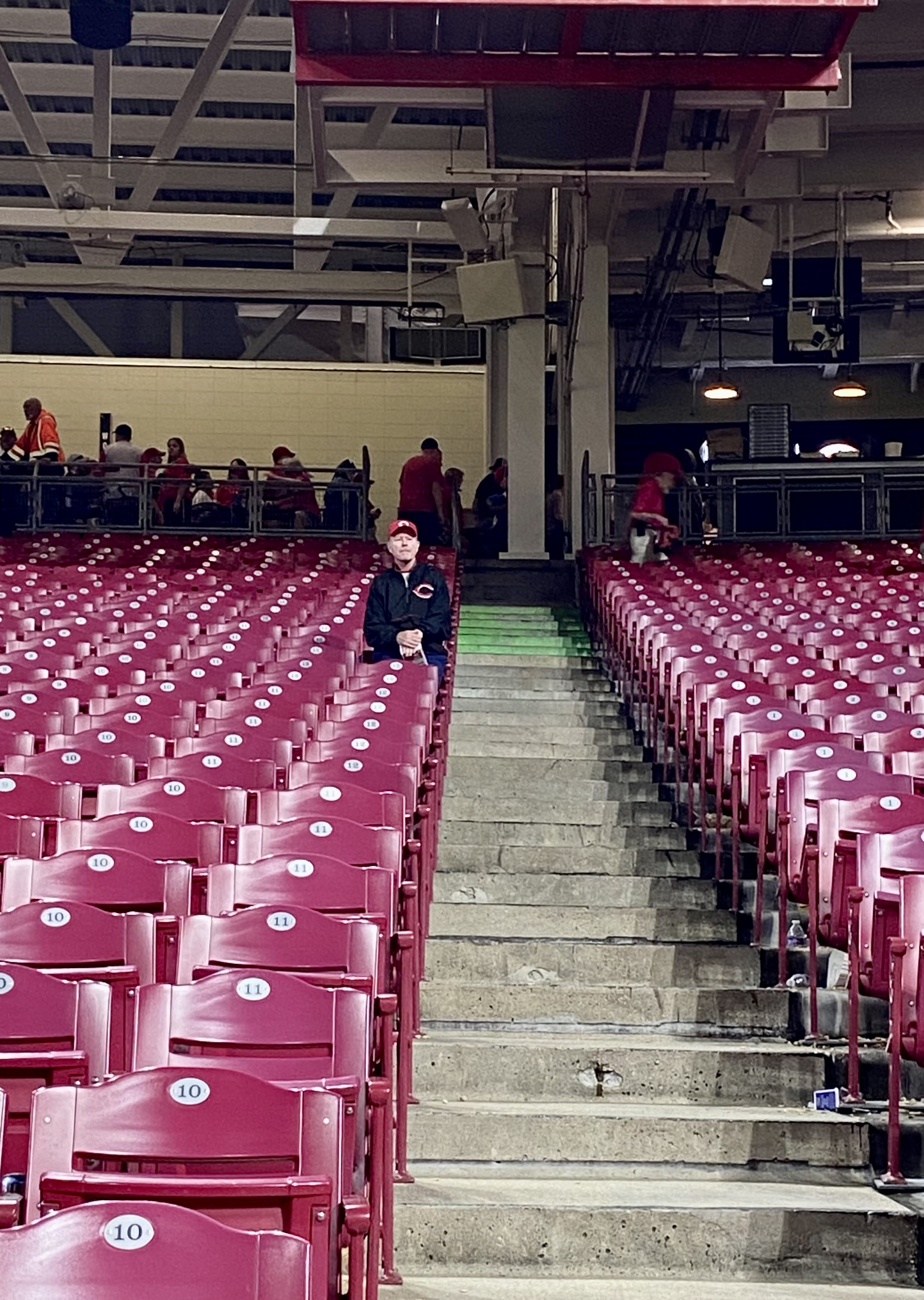 The Reds surprised them with a win, and I love this picture Will took of my dad after the game. The kids went down to the field, the fans cleared out, and my dad sat in that familiar place taking it all in, making new memories while old ones lingered. The music still plays for Fuzzy too.